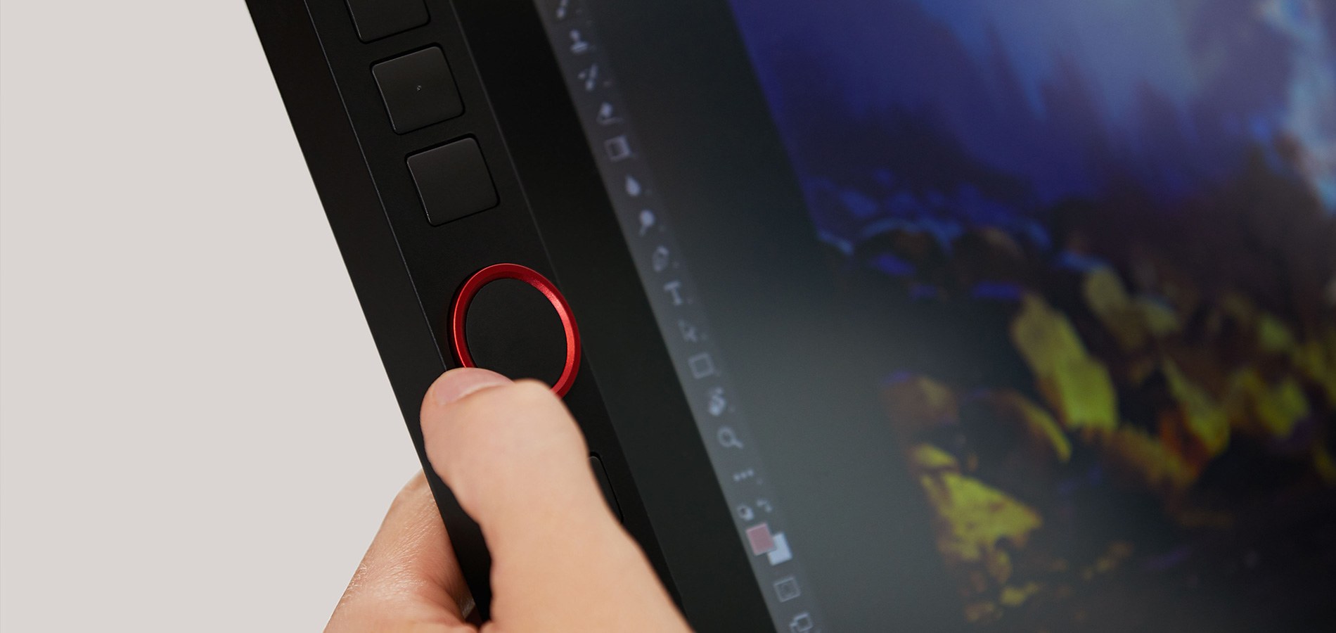 XPPen Artist 22R Proには2個の操作しやすい多機能レッドリングホイールと、20個のカスタマイズ可能なショートカットキーが本体両側に配置され、右利き、左利きどちらのユーザーも便利に操作できます。