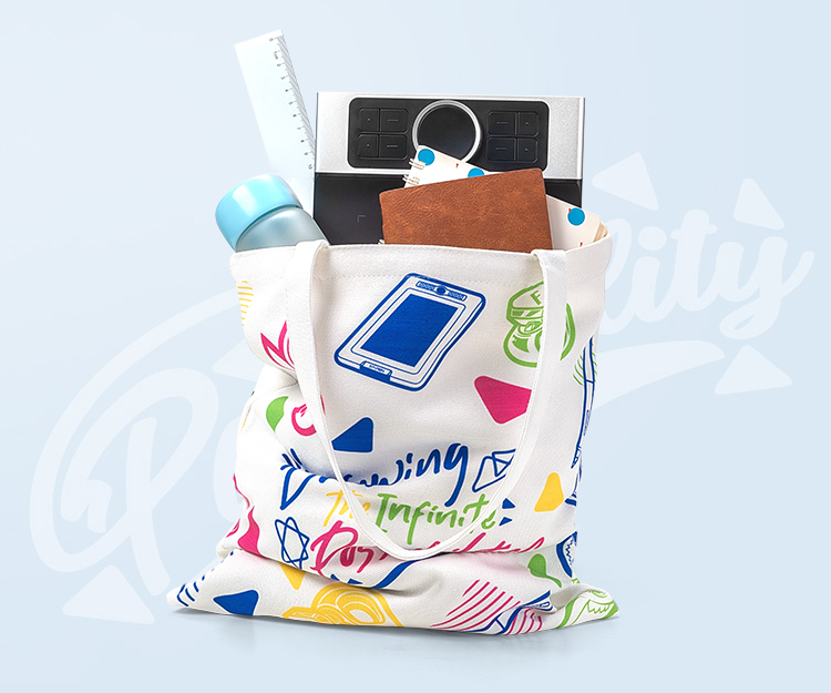 XPPenトートバッグは大容量を収納できるデザインで、本からペンタブレットまで何でも収納できる日常使いに最適なバッグです。持ち手も丈夫で、長くご愛用いただけます。