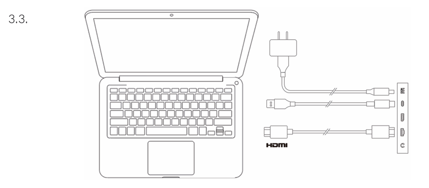 HDMI:HDMIケーブルとUSB-C to USB-Aケーブルを使用して、コンピュータとデバイスを接続します