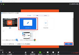 Ⅲ.例えば、ホワイトボードを共有したい場合、ホワイトボードを選択して、「共有」ボタンをクリックします。