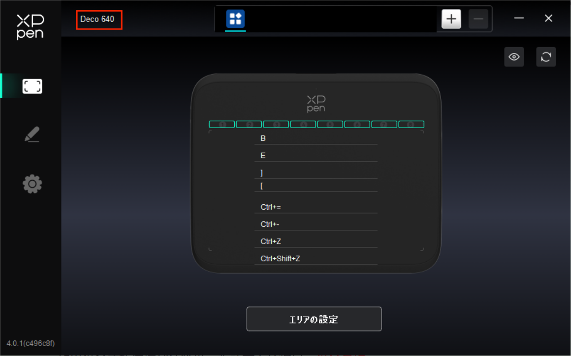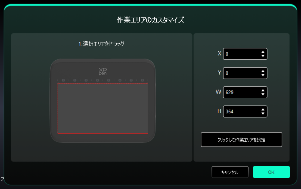 「作業エリア」にて、デバイスの作業エリアと画面エリアの間のマッピングを設定してください。