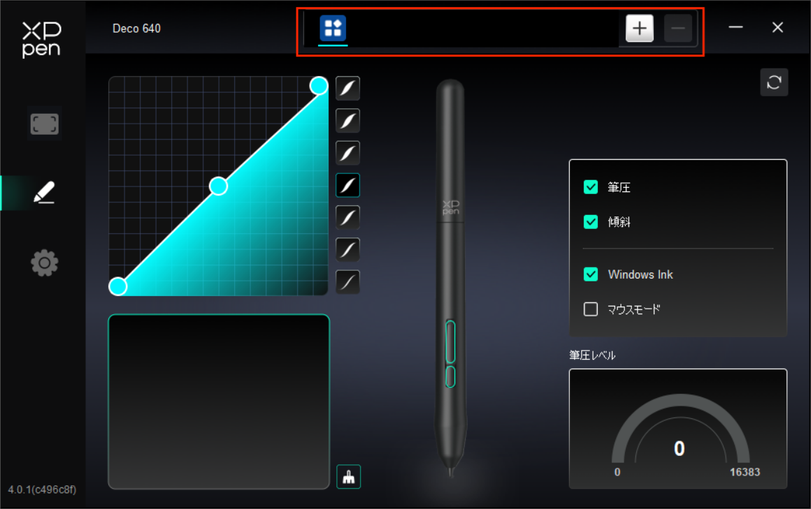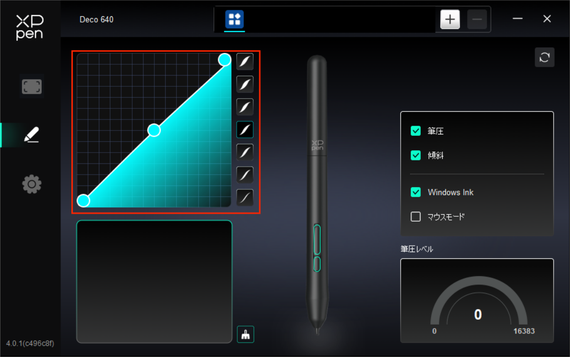 f) ドライバで筆圧が正常であれば(Windows:ドライバーのペンの設定でWindows Inkが有効になっていることを確認してください)、描画ソフトを実行して再度テストしてください。