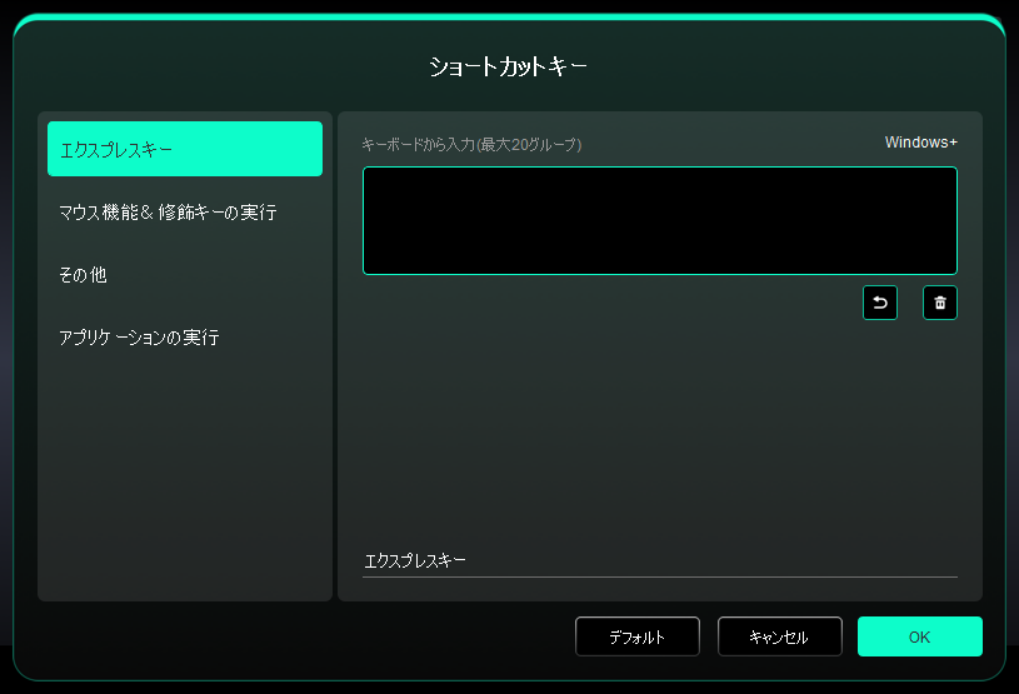 複数のショートカットキーを設定する事もできます。例えば、Ctrl+C、Ctrl+V と入力してキーを押すと、設定された機能がすべて実行されます。