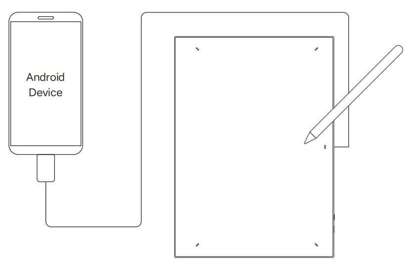 1. OTGアダプタを介してUSB-CケーブルをAndroid端末とペンタブレットにそれぞれ接続してください。