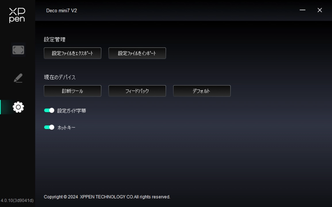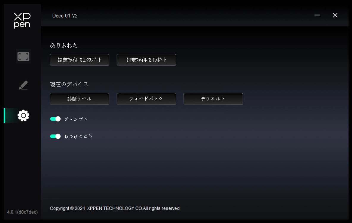 設定内容をインポート・エクスポートし、設定ファイルとして読込・保存が可能です。(エクスポートする前に、ドライバ画面左の「保存」ボタンをクリックして変更した機能を適用してください。この機能は同じOS間でのみ利用できます。