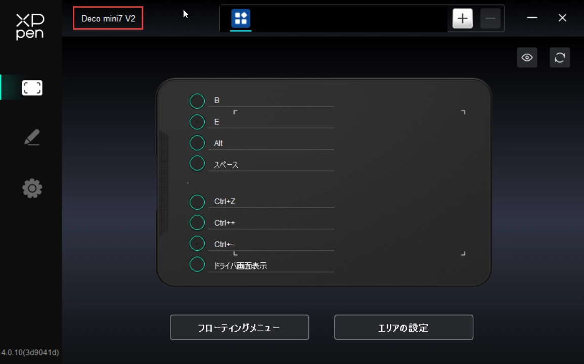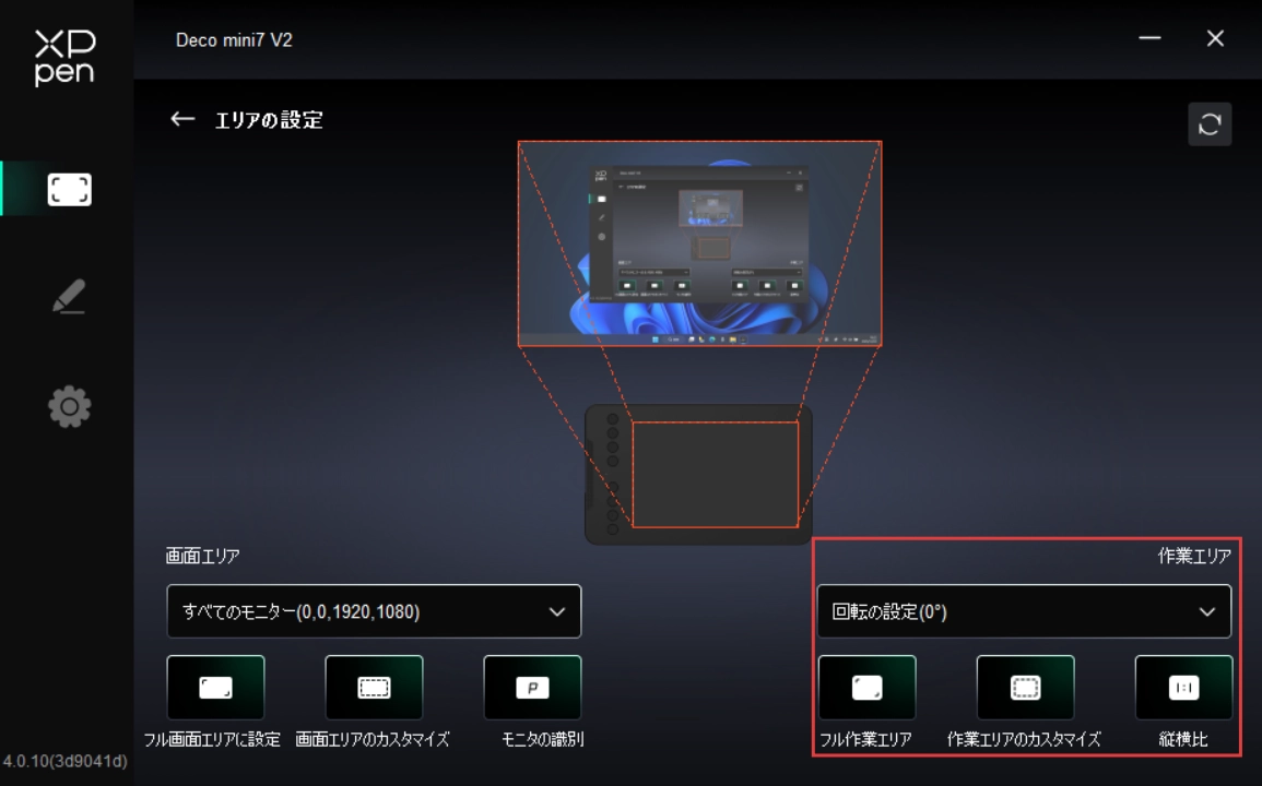 「作業エリア」にて、デバイスの作業エリアと画面エリアの間のマッピングを設定してください。